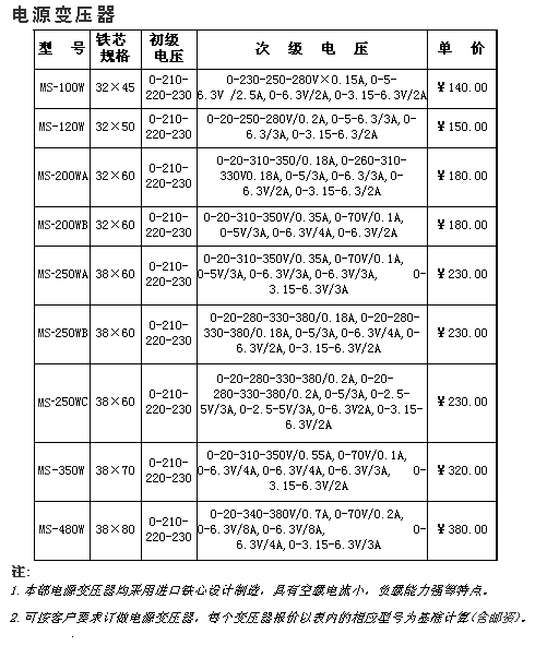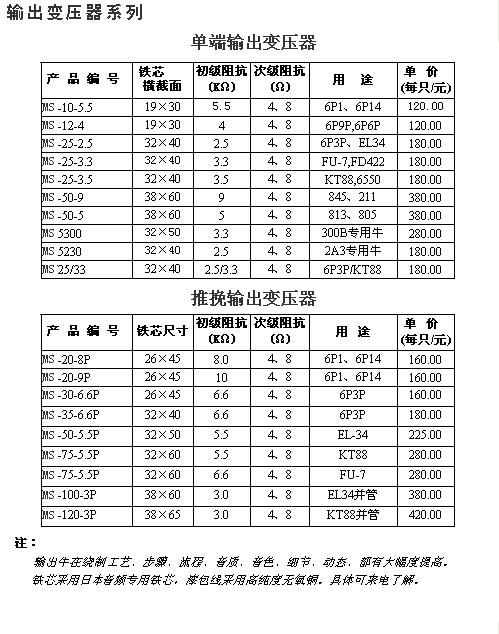 名称:胆机扼流圈/输出/电源变压器系列